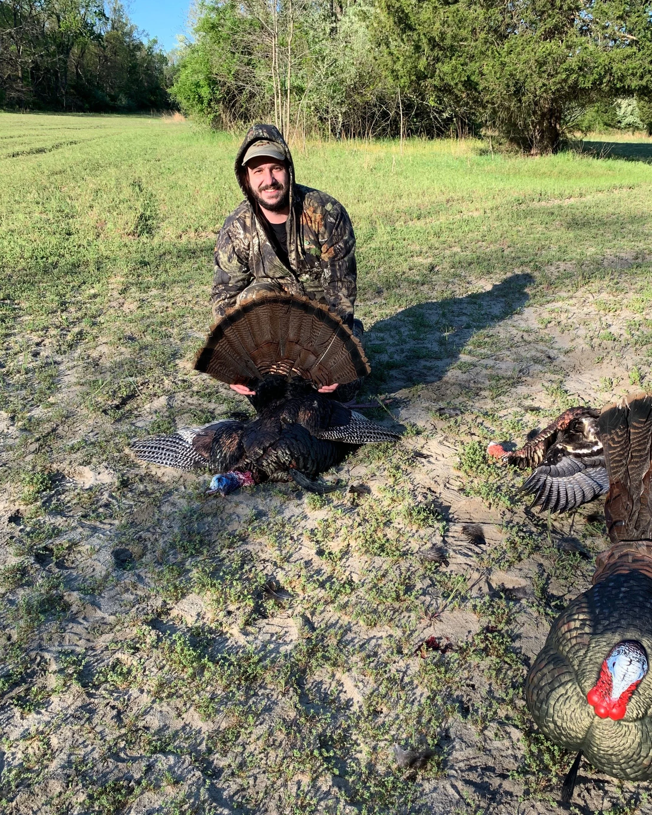 Rob with his first tom on his first turkey hunt; both he and Ryan were able to double this morning of E week.